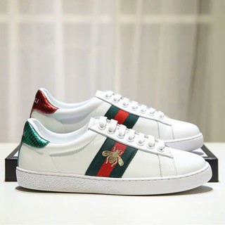 Gucci ace plain white leather (green crocodile leather heel).